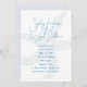 Moderno e simples convite de casamento com um tema do mar. Livro branco com texto azul marinho. Um script grande é usado para os nomes da noiva e noiva no topo do papel de 5 x 7 polegadas com uma imagem de fundo de estrelas grandes/estrelas marinhas. Todo o texto da cerimônia é adicionado no formulário de parágrafo para personalizar facilmente o seu evento. O reverso é azul-cinza pálido e sólido. Além disso, faça o download para compartilhar digitalmente, se preferir.