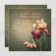 Convite de Casamento outono quadrado elegante feito em um fundo verde antigo. Gráficos impressionantes de uma flor e borboleta de íris de cor creme e burro, decoram o lado direito do convite. Personalize o texto do roteiro colorido do creme para sua celebração do casamento. Os produtos correspondentes estão disponíveis.