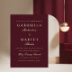 Este convite de casamento simples e elegante apresenta uma bela cor burgundy escura com a coordenação da tipografia branca de cor dourada clássica.