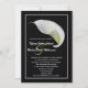 Os lírios Calla são a flor perfeita para o casamento e este convite para o casamento dos lírios calla é o convite perfeito para o casamento floral. Este convite para o casamento apresenta uma bela lírio branco em um fundo preto com os nomes do casal do casamento em um roteiro elegante ao lado da lírio da calla com os detalhes do casamento abaixo. Simples elegância no seu melhor é o que é este convite de casamento para a calla lírios. Um convite de casamento excelente para o amante da calla Lily. Direitos autorais