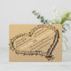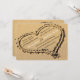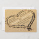 Este convite de casamento divertido tem um coração puxado pela mão numa praia arenosa e uma cruz feita de conchas e madeira derivada. Também apresenta uma redação católica.