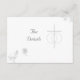 A frente de design apresenta um título personalizável exibido ao lado da imagem de uma cruz com anéis de casamento unidos no centro. Os cantos superior direito e inferior esquerdo apresentam a imagem de roseleaves. O canto inferior esquerdo também mostra a imagem de duas pombas, uma em voo em direção à outra. O inverso apresenta as informações de recepção e alojamento, bem como as informações sobre o registro do casamento. Se preferir não incluir as informações do registro de casamento, simplesmente deixe este vazio de área ou substitua-o por outro texto. A escolha é sua! Projetado para coordenar com a "Suíte de Casamento Católico Tradicional de Unidade Nupcial".