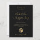Modelo de convite para casamento celestial preto e dourado com lua de ouro, estrelas e texto. Edite o convite para corresponder ao seu estilo de evento.