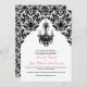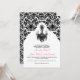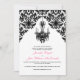 Este convite de casamento de candelabros e damascos brancos e na moda com sotaques cor-de-rosa seria ideal para um casamento formal preto e branco. O texto e o tipo de papel são todos personalizáveis e você pode selecionar qualquer cor de fundo desejada usando o botão personalizar. Se você precisar de outros itens correspondentes, envie um e-mail para niteowlstudio@gmail.com.