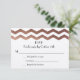 O moderno design zag chic zag chevron com um efeito brilhante de folha de ouro rosa com letra de estilo parisiense, enquanto ainda permite que você personalize este RSVP de casamento bilíngue de dois lados para corresponder ao patrimônio de suas famílias mescladas (o inglês e o espanhol se manifestaram, mas podem acomodar todos os idiomas de fontes Zazzle, incluindo o francês, o alemão, o filipino, o português e italiano). Excelente para qualquer deco de arte, moda ou simplesmente casamento elegante. Personalize a cor, a fonte e o idioma do plano de fundo para fazer disso um convite personalizado. Confira a papelaria correspondente disponível em nossa loja. E se algo estiver faltando, nos avise e criaremos para você!
