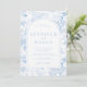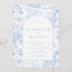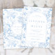 Um delicado padrão Chinoiserie elegante com flores brancas-claras primavera de verão, convite clássico de casamento com noiva e monograma nas costas.