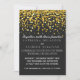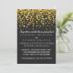 Convite para casamento moderno e elegante de pontos Dourados e negros com pontos Dourados e negros em fundo negro.