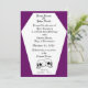 Convite branco e roxo / violeta com um esboço de caixão que tem crânios em ambos os lados e "Até a morte nos separe" opcional no verso. Perfeito para muitas ocasiões, como casamentos, aniversários, festas de Halloween, reuniões de férias e anúncios. Disponível em outras cores.