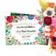 Perfeito para um casamento de destino ou apenas um de temas mexicanos, este convite horizontal e totalmente personalizado apresenta um quadro de flores e folhagem inspirado pelo colorido bordado de artistas mexicanos nativos.