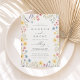 Convide seus convidados com este charmoso convite de casamento de flor silvestre, com flores pintadas à mão, em rosa pastel, lavanda, amarelo e azul. Projetado com uma elegante estrutura floral e tipografia moderna, este convite é perfeito para casamentos de jardim, comemorações rústicas ou cerimônias românticas ao ar livre. Totalmente personalizável com seus nomes, data de casamento e detalhes de local para criar uma manutenção que seus convidados apreciarão.