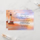 Convite de casamento com uma pintura romântica de um oceano com um farol e duas gaivotas ao pôr do sol. Perfeito para um casamento de praia ou destino. Você pode personalizar ou excluir campos de texto. Também é possível mudar fontes e muito mais. Para todas as opções, escolha "personalizar". Este convite tem uma placa RSVP correspondente.
