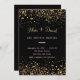 Bonito convite para casamento negro e Dourado. Convite para casamento preto e Dourado com letra roxa/rosa.