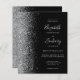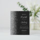 A borda esquerda deste elegante convite de casamento moderno apresenta uma borda falsa de prata. O texto personalizável combina a escrita manual de cinzas prateadas pálidas, fontes copperplate e itálico em um fundo preto. O verso apresenta um design preto e prateado correspondente.