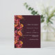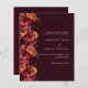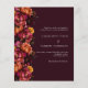 Para um casamento elegante e romântico. Um fundo burguês profundo decorado com florais cor-de-rosa, arrojados e laranja. Personalize e adicione seus nomes e detalhes. 1 folha = 1 convite impresso de borda a borda.