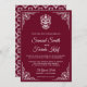 Encontrem seus hóspedes com este convite de casamento do tema Calavera com uma elegante fronteira de ornamentado branco e um belo crânio contra um fundo burgundy. Basta adicionar os detalhes do seu evento neste modelo fácil de usar para torná-lo um convite de tipo único. Sacudir a carta para revelar um padrão elegante de burgundy e branco na parte traseira da carta. Este convite é totalmente personalizável. Todos os textos são editáveis e a cor de fundo pode ser facilmente alterada para quais melhores ajustados você pode fazer.