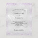 Um convite de casamento moderno, elegante e minimalista. Fundo de aspecto fino prateado decorado com cinzas roxas, lavandas e borboletas como marca d'água. Personalize e adicione seus nomes e detalhes do casamento. Letras pretas coloridas.