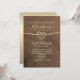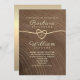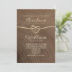 Simples, elegante e minimalista convite para casamento de madeiras rústicas com falso coração de corda de ouro e roteiro de caligrafia moderno.