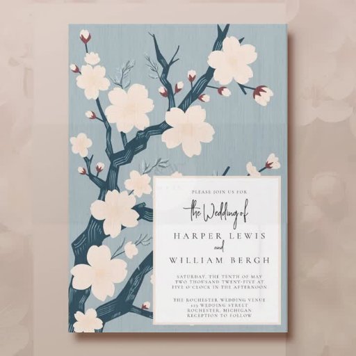 Elevem o vosso casamento com este convite da vintagem contemporânea, com uma árvore de cereja estilizada sobre um fundo azul-claro texturizado. O verso mostra um padrão inspirado no japonês ao combinar com o azul claro, adicionando um toque de elegância à sua celebração do tema japonês.