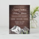 Incêndios para seus convidados com este convite de casamento rústico com montanhas bonitas de neve e pinheiros com tipografia moderna contra um fundo de madeira de celeiro. Basta adicionar os detalhes do seu evento neste modelo fácil de usar para torná-lo um convite de tipo único.