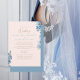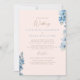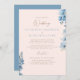 Elegante Blush e convite de casamento azul. Não há pais listados. Script Simples. Entre em contato com o designer para mudanças neste design (cor, pais, número de locais) Dois locais. Igreja.