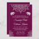 Incêndio aos seus convidados com este convite tradicional de casamento que inclui uma elegante arte de henna e elefantes lindamente decorados contra um fundo roxo. Basta adicionar os detalhes do seu evento neste modelo fácil de usar para torná-lo um convite de tipo único. Este cartão é totalmente personalizável. Todos os textos são editáveis e a cor de fundo pode ser facilmente alterada para quais melhores ajustados você pode fazer.