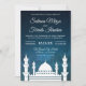 Incêndios aos seus convidados com este elegante convite para casamento do tema árabe, com uma bela ilustração da mesquita com a tipografia moderna contra um fundo de galáxia azul. Basta adicionar os detalhes do seu evento neste modelo fácil de usar para torná-lo um convite de tipo único.