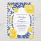 Convite ao casamento da Modern La Dolce Vita Lemon. Traga o romance da Costa Amalfi para seu dia especial com os Convites de Casamento de Limão Italiano La Dolce Vita. Apresentando ilustrações de limão pintadas à mão, fontes elegantes de escrita e sotaques de azulejo mediterrânicos, este design capta o charme vibrante e a beleza beijada ao sol da Itália
