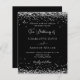 Um fundo preto chic, decorado com falso brilho prateado, brilhos. Personalize e adicione seus nomes e detalhes. 1 folha = 1 convite impresso de borda a borda.