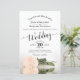 Este belo orçamento ou convite para casamento de baratos apresenta uma design romântica com uma rosa de pêssego de solteiro de longo curso que se põe ao seu lado e reflete numa piscina de água. A tipografia apresenta caligrafia de script e um layout sofisticado. A parte de trás é uma cor laranja pálida marmoreada. Uma maravilhosa maneira de convidar seus amigos e família para compartilhar sua alegria em seu dia especial.