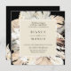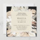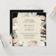 Frentes de palmeiras, orquídeas, lírios e grama de pampas, convite para o casamento. A frente da placa apresenta fundo preto e bege. A parte traseira da placa apresenta cor preta sólida e arranjo de folhagem correspondente. Personalizar texto, estilo de fonte, cor e tamanho.
