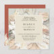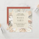 Frentes de palmeiras, orquídeas, lírios e grama de pampas, convite para o casamento. Na frente da placa há uma faixa prateada e um fundo bege de soja. A parte traseira da placa apresenta cor laranja de gengibre sólida e arranjo de folhagem correspondente. Personalizar texto, estilo de fonte, cor e tamanho.