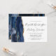 A borda esquerda deste elegante convite de casamento moderno apresenta um marinho azul de aquarela agata borda aparada com falso brilho dourado. O texto personalizável combina manuscrito, copperplate e fontes itálicas em cinzas de carvão em um fundo branco. O verso apresenta um design azul-marinho e um agate-ouro correspondentes.