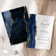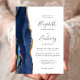 A borda esquerda deste elegante convite de casamento moderno apresenta um marinho azul de aquarela agata borda aparada com falso brilho dourado. O texto personalizável combina manuscrito, copperplate e fontes itálicas em cinzas de carvão em um fundo branco. O verso apresenta um design azul-marinho e um agate-ouro correspondentes.