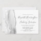 A borda esquerda deste elegante convite de casamento moderno apresenta uma cinza e uma aquarela branca, aparada com falso brilho prateado. O texto personalizável combina manuscrito, copperplate e fontes itálicas em cinzas de carvão em um fundo branco. O verso apresenta uma cinza correspondente, design branco e agata prateada.
