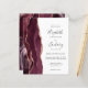A borda esquerda deste elegante convite de casamento moderno apresenta uma cor-de-água vermelha borrifada, aparada com uma falsa rosa dourada. O texto personalizável combina manuscrito, copperplate e fontes itálicas em cinzas de carvão em um fundo branco. O lado inverso apresenta um design de burgundy e ouro-rosa.