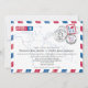 Personalize o seu casamento com esta Design de Viagem de Carta de Correio Aéreo angustiada para o seu Casamento de Destino para a Alemanha. Mapa do mundo. Dois corações vermelhos nos lugares de onde a noiva e o noivo são. Este é Oregon EUA e Alemanha. As linhas pontilhadas unindo-os e um coração pontilhado em torno de Londres onde se encontraram e vivem. O carimbo mostra a localização do casamento na Alemanha. Se você precisar de locais diferentes ou de uma mudança de cor ou de placas para acompanhar este tema, envie um email para paula@labellarue.com
