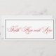 Tal como adaptado de 1 Corinthians 13, este elegante convite para o casamento branco e preto para a Fé vermelha, Hope e Love curly manuscrito é a escolha ideal para o casamento cristão moderno. Veja o conjunto completo de opções de convite e acessório na loja Zazzle, o Graphic Suite.