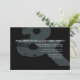 Um convite para casamento de ampersas tipográficas modernas e rústicas. Horizontal com texto alinhado à direita em cima de um amplificador rústico. Texto branco sobre o painel de cinzas verde e fundo preto. As costas são pretas. Para ajustar o layout, clique em Personalizar Mais, Editar Texto e clique em e arraste seções para os locais desejados. Use Cntrl para selecionar e mover várias seções ao mesmo tempo.