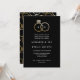 Um monograma moderno brilha com anéis de casamento de ouros entrelaçados e um fazer de texto personalizado este é um novo convite clássico de casamento com texto simplificado em preto e branco formal. Personalize todo o texto deste convite para um convite clássico personalizado e simples que suportará o teste do tempo.