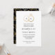 Um monograma moderno brilha com anéis de casamento de ouros entrelaçados e um fazer de texto personalizado este é um novo convite clássico de casamento com texto em branco e preto limpo. Personalize todo o texto deste convite para um convite clássico personalizado e simples que suportará o teste do tempo.