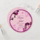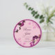 Descubra o nosso elegante convite de casamento redondo, com um anel magenta vibrante adorado com grupos de flores roxas e peludas em cada esquina. Delicadamente acentuado com peônias brancas e magenta, folhas esverdeadas e galhos agradáveis de flores de cereja, esta design captura a beleza romântica e o encanto floral — perfeito para o seu dia especial.
