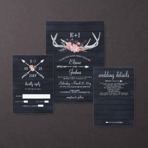 Convite para Casamento de Antler Floral com Blush de Marinho de Orçamento