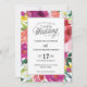 Este convite de casamento moderno mostra flores de aquarela em rosa vibrante. Personalize-o com os seus próprios detalhes de casamento. Veja outras peças neste lindo pacote de casamento aqui: