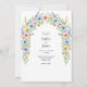 Lindos antecedentes de convites para o casamento, com um pano de fundo branco limpo e uma borda de arco de flor silvestre a cores-d'água em tons azuis, roxos, rosa, amarelo e laranja pastel. Perfeito para impressão a pedido de papelaria de casamento.