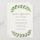 Este elegante convite de casamento apresenta um arco de aquarela macia feito de delicadas folhas verdes com sutis speck de ouro. A estrutura foliar curva cria um aspecto leve e natural com bastante espaço no centro para seus detalhes de casamento. Perfeito para jardins, boho ou casamentos naturais.