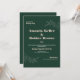 Celebre o seu dia especial com este elegante convite de casamento moderno, com uma arte minimalista de linhagem das folhas sobre um fundo verde profundo. Perfeito para casamentos contemporâneos de jardim ou celebrações sofisticadas com tema botânico.