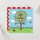 Um doce convite para celebrar um dia de casamento. A carta apresenta uma cena colorida de jardim com uma macieira, um mamangabo zunhando e uma joia de pássaros esfregando no chão.