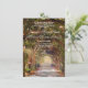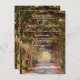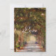 Este belo convite para o casamento mostra um túnel de carvalhos a caminho. A luz do sol atravessa os galhos das árvores. Um banco de parque convida uma casal para descansar na beleza da cobertura de carvalho. Tem cores castanhas, amarelas e laranja no outono, enquanto as cores verdes ainda irradiam da cena do país. O sol convida-vos a imaginar a viagem que está prestes a começar. O mesmo design de carvalho está atrás do convite com a palavra "Amor" na escrita. Você pode adicionar seu próprio convite de casamento ao modelo para personalizar facilmente este anúncio de casamento. Itens correspondentes: