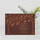 Um belo convite para o casamento no outono com duas árvores áridas com algumas folhas de outono lindamente cobertas. As cores são marrom, laranja, amarelo. No centro do convite está o lugar para inserir informações sobre o casamento. Você pode personalizar o cartão como quiser.