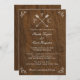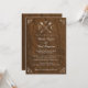 Este convite apresenta uma textura de latido de árvore no fundo para uma sensação rústica e quente. Há duas setas cruzadas no topo com um coração e as iniciais da noiva e do noivo. As decorações de giro no canto adicionam um toque de na moda. Este convite é modesto mas elegante e é ideal para um casamento com um tema da natureza ou do exterior.